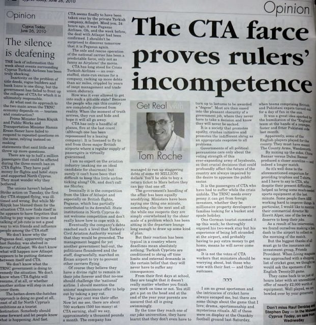 Cyprus Today – Tom Roche’s CTA Opinion