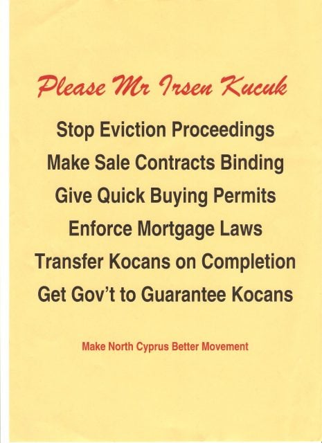 Yes, I will be sticking on my car window the yellow poster that calls on the Prime Minister Mr Irsen Küçük to do the right thing. For those of you not at the meeting, I am attaching a copy to this article. Will it make a difference, I don’t know but I am prepared to try anything.